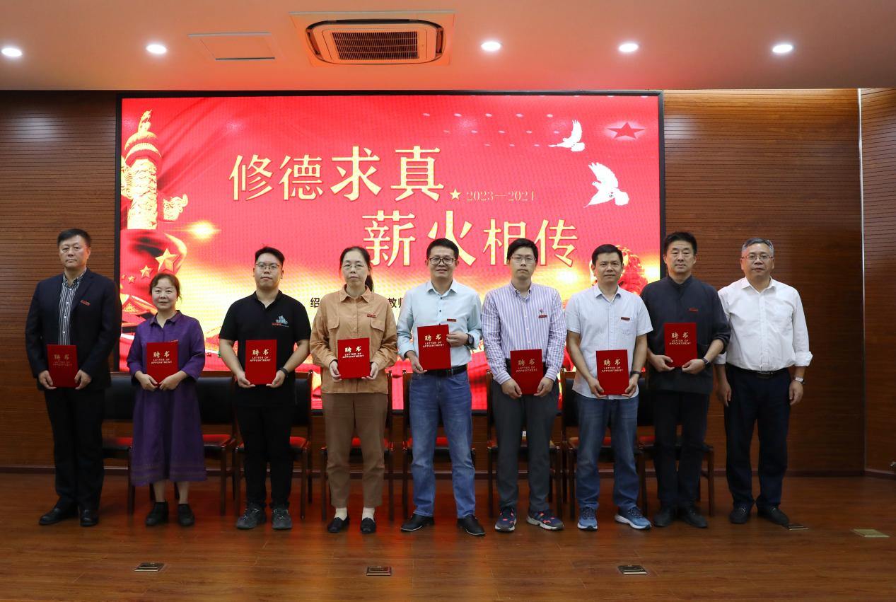 聘任仪式上,柳国庆为每位导师颁发聘书,青年教师分别向结对导师鞠躬、献花、行拜师礼。聘任仪式庄重又热烈,简短又温馨,满满的仪式感让青年教师对“三尺讲台”的敬畏之心、对导师的尊重感恩之情、对教学工作的责任和使命感油然而生。拜师礼之后,全国优秀教师、人文学院俞志慧老师作为导师代表讲话,教师教育学院宋卓奇老师、数理信息学院吴继宝老师分别代表青年教师助讲培养对象老学员和新学员发言。
