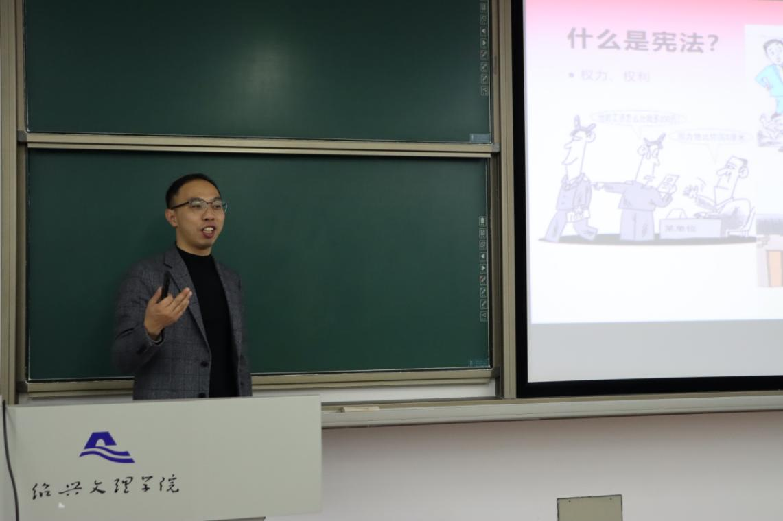 组织宪法专题系列讲座、论坛。12月3日,商学院法律系徐肖东老师以《宪法基本知识解读》为主题,为学生讲解了我国宪法的起源、发展历程以及“国家宪法日”的由来,并结合国家战略和社会民情,通过一个个现实生活中的鲜活案例诠释了我国宪法精神和公民自身对于宪法的运用。12月4日,绍兴市司法局副局长朱淼蛟开展题为《法律人思维·实践·修养—多年法官生涯的感想与建议》的专题讲座,引导同学们将思维融于宪法,更好地行使自己的权利。