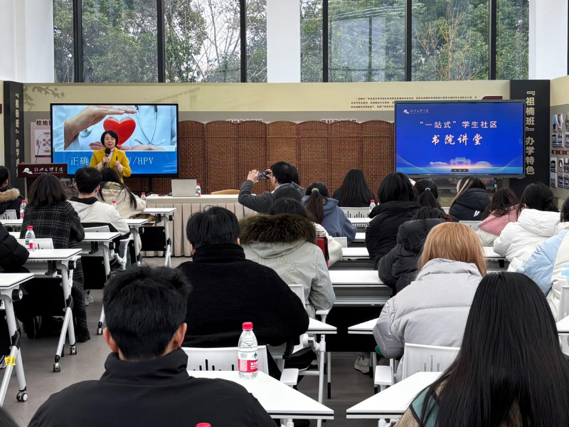 聘任仪式结束后,2025年“书院讲堂”首讲开讲。绍兴市妇幼保健院妇女保健部主任、主任医师、研究生导师何尧,绍兴市妇幼保健院妇五科科主任、主任医师、研究生导师张静,两位校外导师围绕生命健康主题为同学们开展讲座。