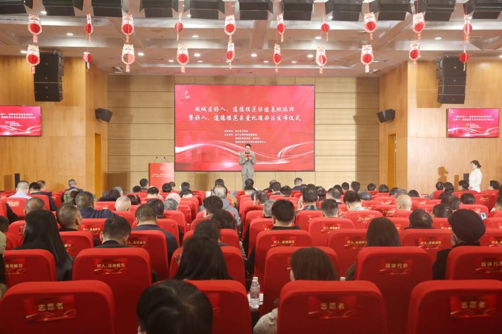 弘扬榜样力量,传递城市温度,近日,由市文明办指导,越城区委宣传部(文明办)、越城区新时代文明实践指导中心和附属医院联合主办的越城区好人、道德模范保健基地揭牌暨好人、道德模范关爱礼遇办法发布仪式在医院学术报告厅举行。校党委副书记黄坚,市委宣传部副部长、文明办主任陈军卫,越城区委常委、宣传部部长吴萍,越城区新时代文明实践指导中心主任姚君桥,附属医院党政班子成员、全体中层干部,相关爱心部门、企业负责人,13个镇、街宣统委员,好人、道德模范代表等三百余人参与仪式,共同见证这一暖心工程的启动。
