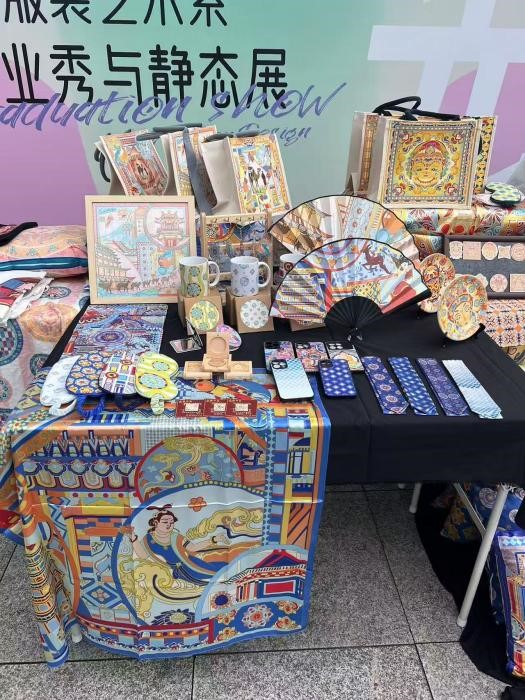 除了动态秀展示,现场还设有静态展区,共展示了25位毕业生的纺织品设计作品。毕业生们把传统文化元素与现代设计方法相结合,开发出兼具文化内涵与实用功能的纺织产品。这些作品展示了学生四年的学习成果,既是对传统文化的当代诠释,更是年轻设计师们面向未来的宣言,受到了业界的肯定与好评。