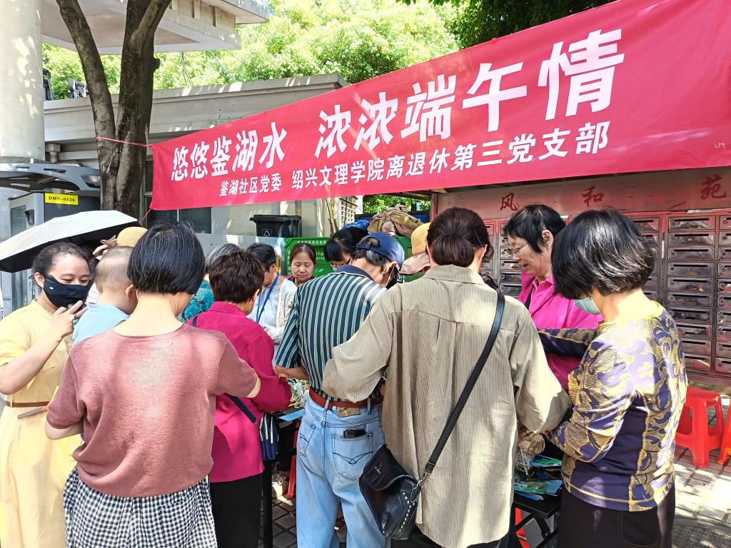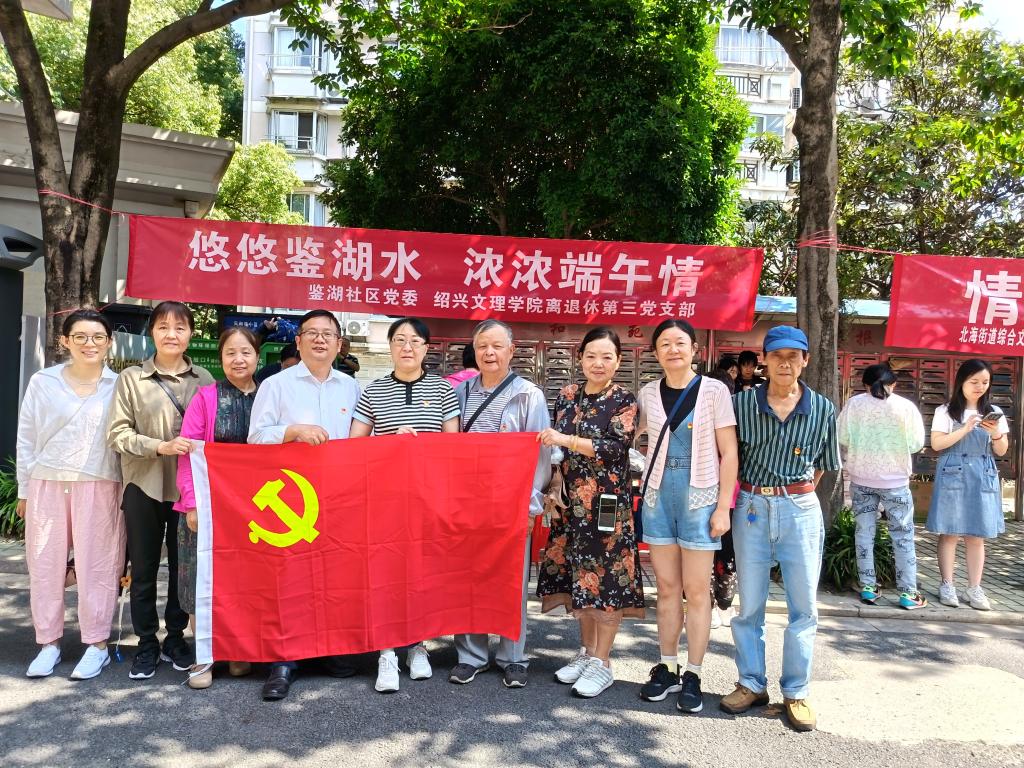 5月29日上午,校离退休第三党支部与鉴湖社区党委在学校教职工居住相对集中的风和苑小区联合举行了以“悠悠鉴湖水・浓浓端午情”为主题的党建共建活动,校离退休党委书记金坚强、鉴湖社区党委书记陈韵芳、离退休第三党支部书记孔金木等到场参加活动。