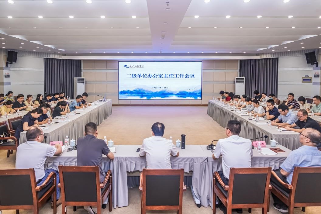 为进一步提升办公室人员能力素质和工作标准化规范化水平,9月25日下午,各二级单位(部门)办公室主任工作会议在图书馆一楼报告厅召开。各二级学院、职能处室、直属单位办公室负责人以及学校办公室全体成员等50余人参加会议。会议由学校办公室主任毛宇锋主持。