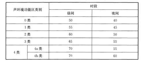 表4 各类声环境功能区的环境噪声等效声级限值(dB(A))