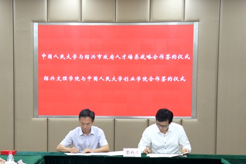 据悉,此次合作是在绍兴市政府的推动下,结合中国人民大学创业学院和我校的特长,在立足绍兴地区产业情况和科技发展情况下展开的合作。本着“资源共享、互惠互利、战略联盟、长远发展”的原则,我校与中国人民大学在合作设立培训基地的基础上,将共建创新创业教育课程体系、导师队伍,组织各类创新创业活动,两校充分利用各方的资源优势,共同推动创新创业工作的开展。