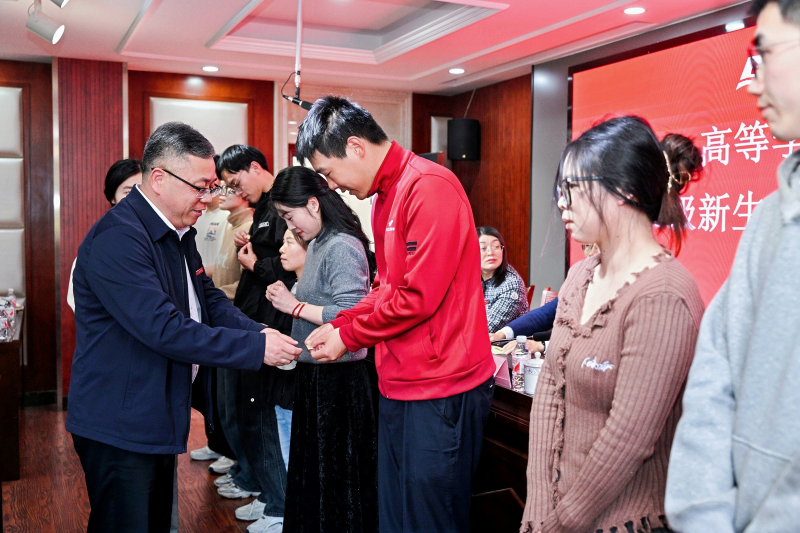 柳国庆为新生代表们一一佩戴校徽。柳国庆指出,学校将竭力构建实体化、信息化智能学习的新型教育体系,尽力满足广大同学多元化学习需求,为大家创造最优学习条件。他对学员们提出了三点希望和要求:一要坚定理想信念,勇担时代使命。在接受高等继续教育的过程中将自身成长成才与时代使命相结合,以学铸魂、以学增知、以学明理、以学促干。二要讲究学习方法,不断提升自我。正确处理工学矛盾,学会读书,通过现象看本质,充分利用时间和网络资源,学会科学的方法提升学术水平,成为行业内“立得住、行得远”的标杆人物。三要秉承卓越理念,实现全面发展。立足个人实际,志存高远、勇于实践、善于创新。