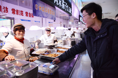 考虑到英语四六级考试、计算机考试、运动会、暑期科研培训等教学特殊情况,餐厅负责人经常主动与学工、团委和相关系(部)联系,了解师生就餐需求变化,提前或延迟餐饮供应时段;在暑期G20期间,餐厅还及时推出送餐服务,为值班人员解决就餐需求。