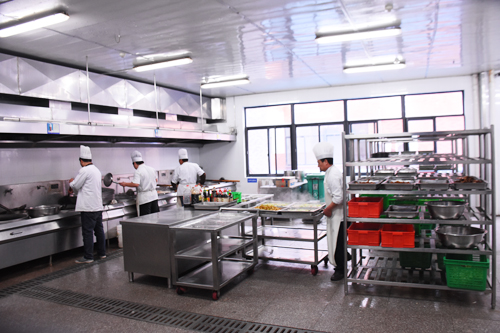 “底线是安全,努力求品质”,为确保餐饮工作万无一失,在食材采购上,所有食材供应商必须有卫生许可证,必须从正规渠道进货;批量采购和异地采购必须向供货商索要食品卫生检验合格证和质量检验报告;验收食品进行感官、包装标识、新鲜程度等指标检查,甚至对食品原料进行检测化验,并做详细记录;购置配备了蔬菜检测仪器设备,细致做好检测报告,定期抽测;设置饭菜留样专柜,做好饭菜留样,保存48小时;加强菜品督查,配有专职安全员,并每周检查,量化考核……