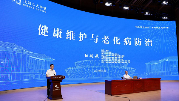 9月2日,浙江大学教授、博士生导师,浙江省科协主席,浙江大学胃肠病研究所所长,浙江大学医学院附属邵逸夫医院消化科主任医师,中国医师协会内镜医师分会副会长,浙江省医师协会消化医师分会会长,浙江省消化学会、消化内镜学会名誉主任委员,浙江大学医学院老化病防治研究中心名誉主任姒健敏教授做客风则江大讲堂,作题为《健康维护与老化病防治》的精彩讲座。校党委书记汪俊昌,校党委委员、医学院院长郭航远,校党委委员、宣传部部长梁瑜,学校相关职能部门负责人,医学院党政领导班子成员、医学院师生代表等聆听讲座。讲座由郭航远主持。