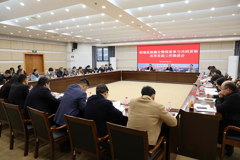 4月7日上午,学校在图书馆一楼报告厅召开校地党建融合暨深度参与共同富裕改革发展工作推进会。校长赵阳、校党委副书记沈赤、副校长寿永明,相关职能部处负责人和全体二级党组织书记参加会议。会议由沈赤主持。