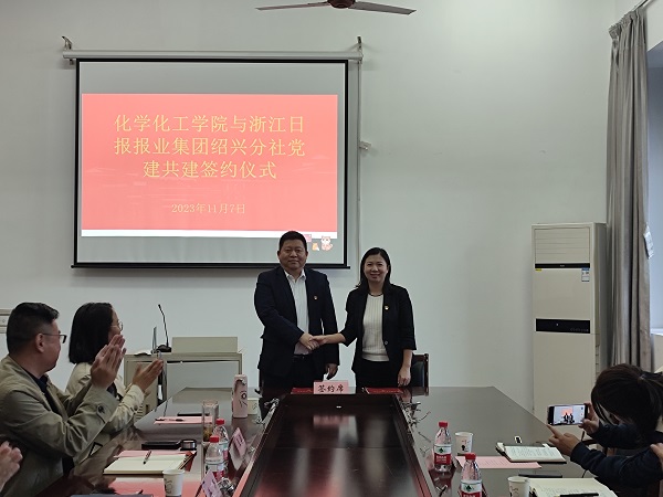 11月7日上午,化学化工学院党委与浙江日报报业集团绍兴分社党支部举行党建共建签约仪式。浙江日报绍兴分社党支部书记、社长陈惠,总监周智敏,事业部主任乐翠球,化学化工学院执行院长曾敏峰、党委书记徐青,双方工作人员和师生代表参加签约仪式。仪式由党委副书记王颖主持。