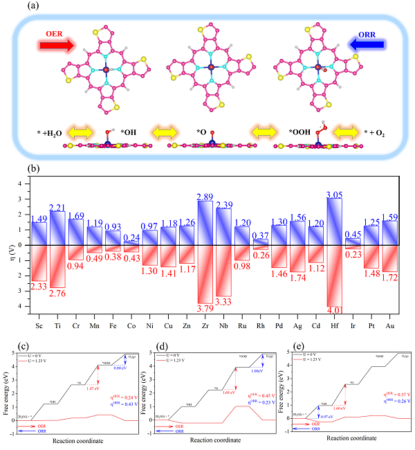 图1. OER/ORR 反应过程, 反应过电位, 反应吉布斯自由能变
