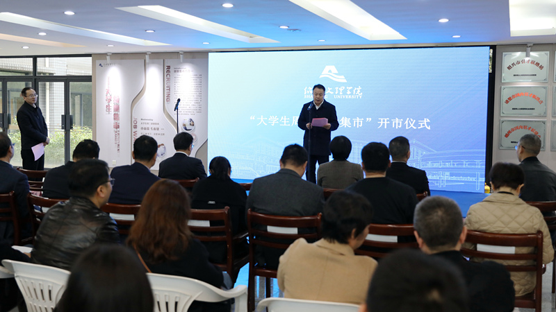汪俊昌宣布我校“大学生周三就业集市”正式开市,并与张荣社共同为就业集市揭牌。