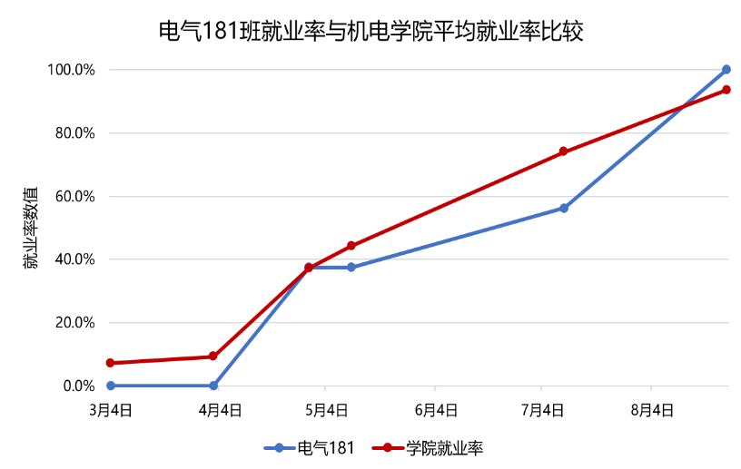 机电学院高度重视就业与创业工作,采取紧逼式的就业率量化考核方式。从2022年3月份开始,几乎是每半个月公布一次就业率数据,每个月召开一次毕业班班主任工作会议。去年3月至7月之间,由于电气181班就业率长时间处在学院平均值以下,托学院就业率的后腿,学生工作书记和学院书记特别关心,纷纷出谋划策并提高必要的帮助。