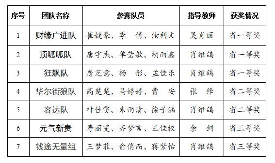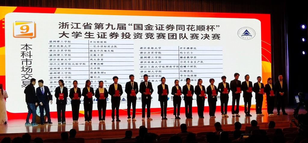 近日,浙江省第九届大学生证券投资竞赛在中国计量大学圆满落下帷幕。全省77所学校的1299支团队参赛,在学校证券投资竞赛基地和校大学生投资理财协会积极宣传、组织下,我校派出18支队伍参加团队赛初赛,其中7支队伍成功进入决赛,最终获一等奖3组,二等奖2组、三等奖2组;47名同学参加个人赛,最终获一等奖1名。参赛人数、获奖数量与层次,均实现提升。