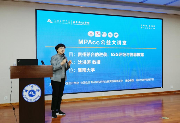 本次MPAcc会计名家公益大讲堂邀请财政部会计名家、全国会计专业学位研究生教育指导委员会委员、财政部首批会计学术领军人才、暨南大学管理学院沈洪涛教授为师生作“贵州茅台的逆袭:ESG评级与信息披露”主题讲座;财政部会计名家、财政部第一届企业会计准则咨询委员会委员、财政部《中华人民共和国会计法》修订研究课题组组长、中南财经政法大学会计学院唐国平教授为师生作“环境会计:反思或批评”主题讲座。