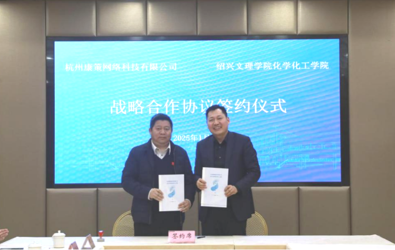 1月7日,化学化工学院与杭州康策网络科技有限公司在铁城科教馆一楼会议室举行合作签约仪式。校地方合作处相关负责人、学院党政班子成员及教师代表,杭州康策网络科技有限公司董事长何吉刚、董事何达峰及相关负责人出席。会议由学院党委书记徐青主持。