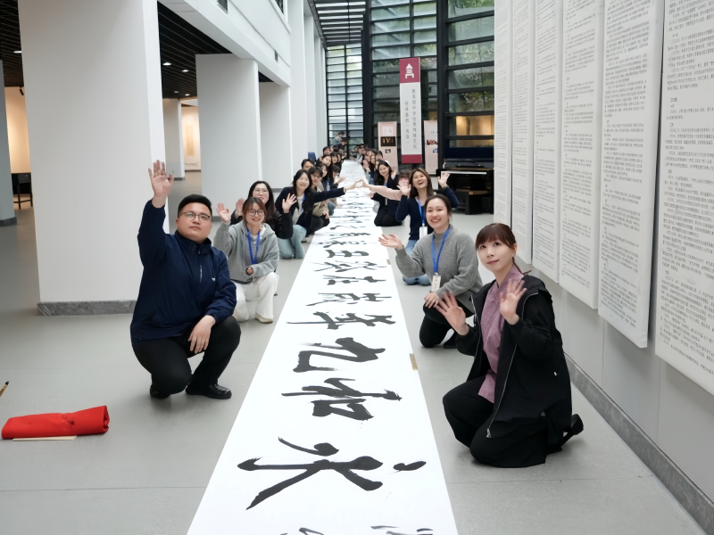 阳春畅写活动中,中日学生结对完成巨幅书法创作《兰亭序》,作品既保留传统精髓,又充满现代创意。助力双方突破语言壁垒,共研书法技艺。此外,师生们探访西泠印社、阳明故里等文化地标,在历史名迹中感悟中华文脉。