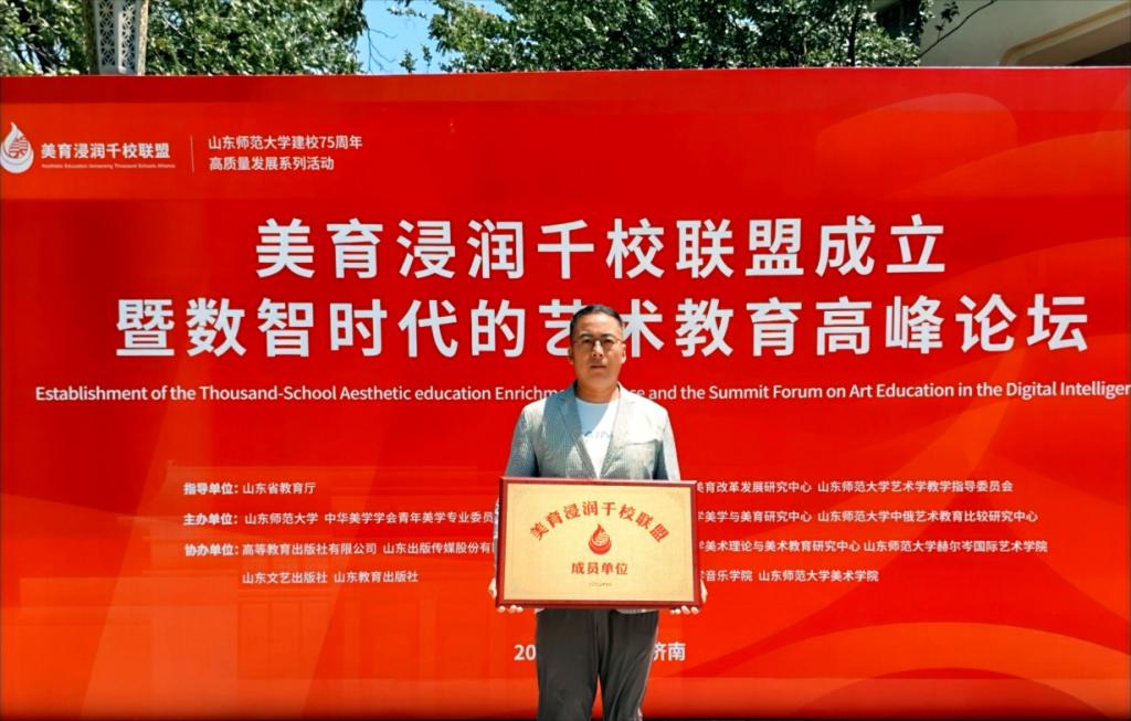 5月17日,由山东省教育厅指导,山东师范大学、中华美学学会青年美学专业委员会主办,山东省学校美育改革发展研究中心、山东师范大学艺术学教学指导委员会等承办的美育浸润千校联盟成立暨数智时代的艺术教育高峰论坛在山东师范大学千佛山校区举行。山东师范大学、山东省教育厅、中华美学学会青年美学学术委员会、清华大学等单位领导出席活动并致辞。来自国内外美育领域、兄弟院校的专家学者、教育实践者700余人参加本次活动。我校蔡元培艺术与设计学院沈真波老师参会,并负责申请加入联盟及会员单位。