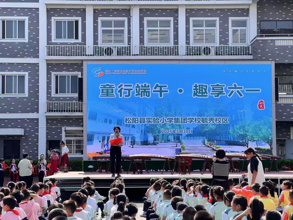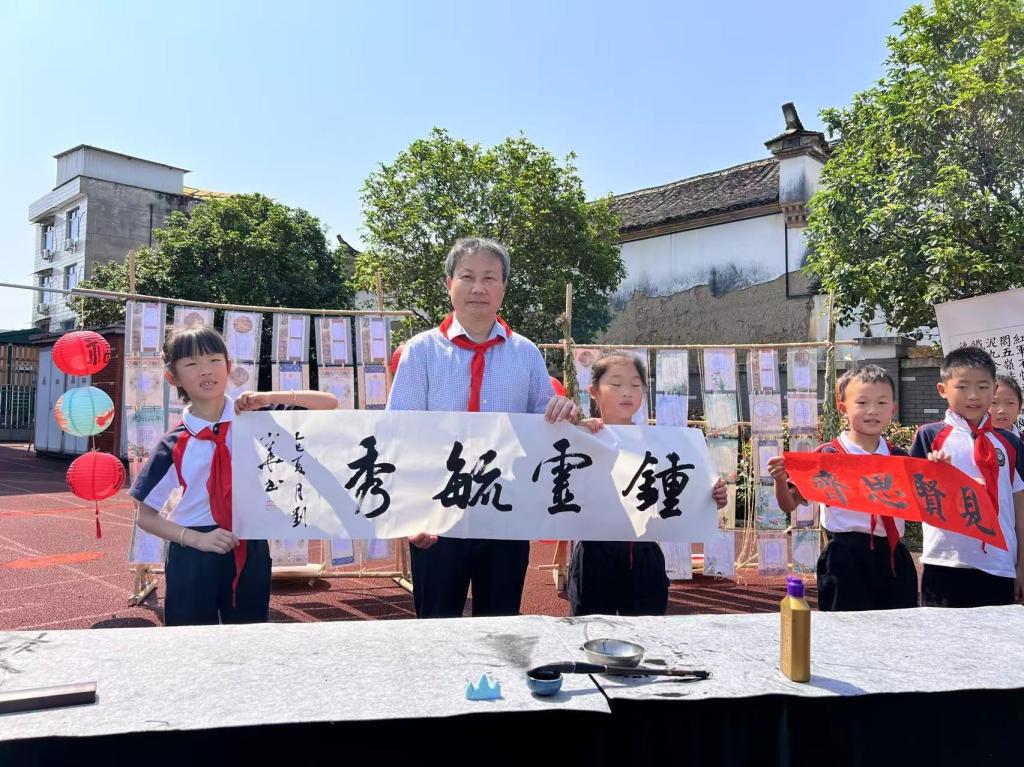 兰亭书法艺术学院院长刘小华教授带领2名研究生代表参与了松阳实小毓秀校区的“童行端午・趣享六一”活动,与全体师生及部分家长进行了书法美育交流。
