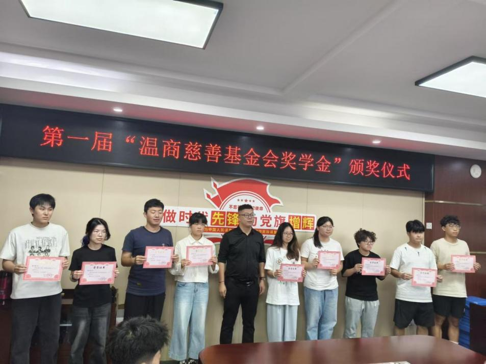商学院(法学院)党委书记徐青宣读表彰文件。仪式由商学院(法学院)党委副书记周建强主持。张定旺先生为“温商慈善基金会奖学金”个人奖获奖学生颁奖。林作河先生、周海波先生为“温商慈善基金会奖学金”团体奖获奖学生颁奖。