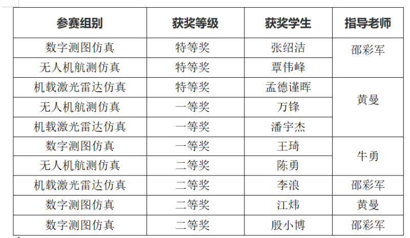 近日,由中国测绘学会教育工作委员会主办、内蒙古科技大学承办、南方测绘集团协办的2025年全国大学生测绘学科创新创业智能大赛在内蒙古自治区包头市举行。经激烈角逐,我校最终荣获特等奖3项、一等奖3项、二等奖4项的优异成绩。