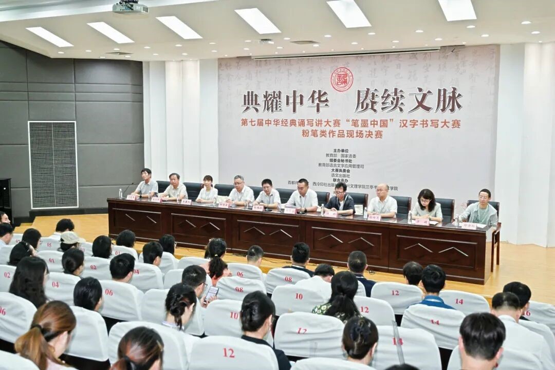 9月21日,第七届中华经典诵写讲大赛“笔墨中国”汉字书写大赛粉笔类决赛在久久精品一区二区|久久久一区二区三区|欧美日韩视频|欧美福利视频|高清欧美性猛交xxxx黑人猛交|久久久www成人免费精品|在线观看成人网站兰亭书法艺术学院举行。本次现场决赛由教育部、国家语委主办,首都师范大学、西泠印社出版社、久久精品一区二区|久久久一区二区三区|欧美日韩视频|欧美福利视频|高清欧美性猛交xxxx黑人猛交|久久久www成人免费精品|在线观看成人网站兰亭书法艺术学院联合承办,旨在弘扬中华优秀传统文化,推广国家通用语言文字,提升师生汉字书写能力和审美素养。本次决赛也是中华经典诵写讲大赛“笔墨中国”汉字书写大赛举办七届以来首次举办现场赛。开幕式由西泠印社出版社总经理来晓平主持。语文出版社副总编辑郑伟钟,西泠印社集团党委委员、副总经理王凌永,副校长柳国庆,西泠印社理事、西泠印社出版社原社长江吟,语文出版社大赛执委会执行负责人朱春玲,首都师范大学初等教育学院副院长梁娟,西泠印社出版社教育发展中心主任许晓俊、兰亭书法艺术学院负责人,近200位参赛选手、领队参加。